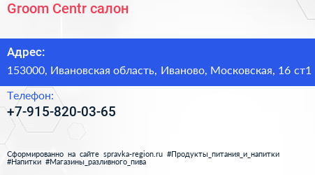 Groom Centr, салон по адресу 153000, Ивановская область, Иваново, Московская, 16 ст1 в дальнейшем Организация, размещена в следующих категориях: