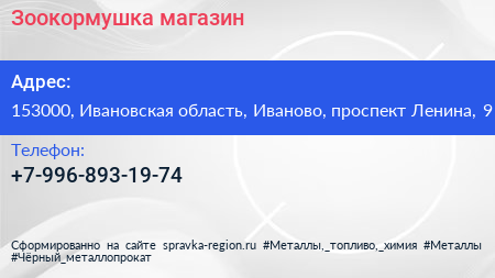 Зоокормушка, магазин по адресу 153000, Ивановская область, Иваново, проспект Ленина, 9 в дальнейшем Организация, размещена в следующих категориях: