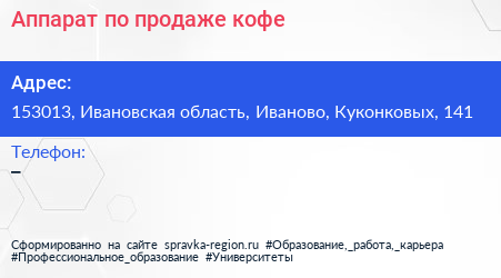 Аппарат по продаже кофе по адресу 153013, Ивановская область, Иваново, Куконковых, 141 в дальнейшем Организация, размещена в следующих категориях: