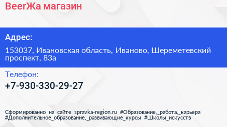 BeerЖа, магазин по адресу 153037, Ивановская область, Иваново, Шереметевский проспект, 83а в дальнейшем Организация, размещена в следующих категориях: