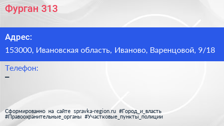 Фурган-313 по адресу 153000, Ивановская область, Иваново, Варенцовой, 9/18 в дальнейшем Организация, размещена в следующих категориях:
