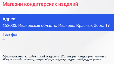 Магазин кондитерских изделий по адресу 153003, Ивановская область, Иваново, Красных Зорь, 19 в дальнейшем Организация, размещена в следующих категориях: