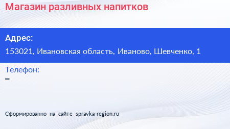 Магазин разливных напитков по адресу 153021, Ивановская область, Иваново, Шевченко, 1 в дальнейшем Организация, размещена в следующих категориях: