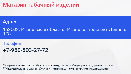 Магазин табачный изделий по адресу 153002, Ивановская область, Иваново, проспект Ленина, 108 в дальнейшем Организация, размещена в следующих категориях: