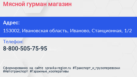 Мясной гурман, магазин по адресу 153002, Ивановская область, Иваново, Станционная, 1/2 в дальнейшем Организация, размещена в следующих категориях: