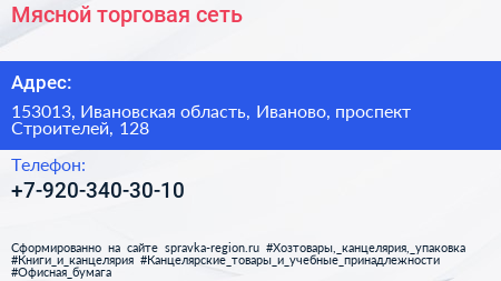 Мясной, торговая сеть по адресу 153013, Ивановская область, Иваново, проспект Строителей, 128 в дальнейшем Организация, размещена в следующих категориях: