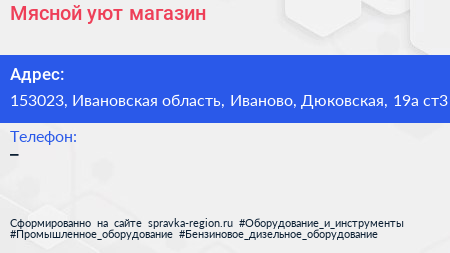 Мясной уют, магазин по адресу 153023, Ивановская область, Иваново, Дюковская, 19а ст3 в дальнейшем Организация, размещена в следующих категориях: