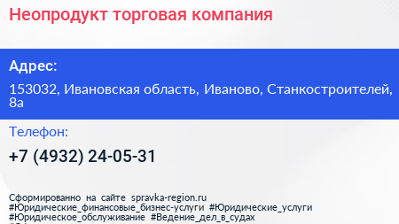 Неопродукт, торговая компания по адресу 153032, Ивановская область, Иваново, Станкостроителей, 8а в дальнейшем Организация, размещена в следующих категориях: