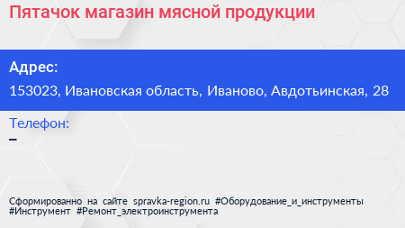 Пятачок, магазин мясной продукции по адресу 153023, Ивановская область, Иваново, Авдотьинская, 28 в дальнейшем Организация, размещена в следующих категориях: