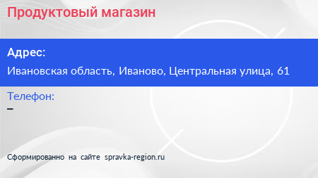 Продуктовый магазин по адресу Ивановская область, Иваново, Центральная улица, 61 в дальнейшем Организация, размещена в следующих категориях: