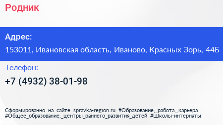 Родник по адресу 153011, Ивановская область, Иваново, Красных Зорь, 44Б в дальнейшем Организация, размещена в следующих категориях: