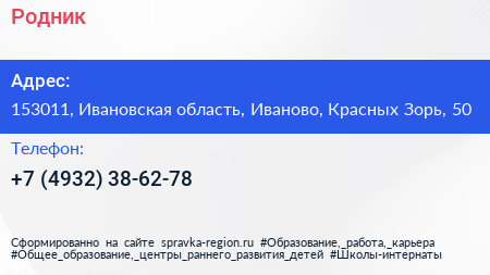 Родник по адресу 153011, Ивановская область, Иваново, Красных Зорь, 50 в дальнейшем Организация, размещена в следующих категориях: