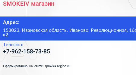 SMOKEIV, магазин по адресу 153023, Ивановская область, Иваново, Революционная, 16а к2 в дальнейшем Организация, размещена в следующих категориях: