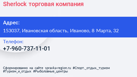 Sherlock, торговая компания по адресу 153037, Ивановская область, Иваново, 8 Марта, 32 в дальнейшем Организация, размещена в следующих категориях: