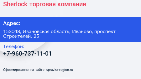 Sherlock, торговая компания по адресу 153048, Ивановская область, Иваново, проспект Строителей, 25 в дальнейшем Организация, размещена в следующих категориях: