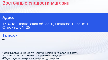 Восточные сладости, магазин по адресу 153048, Ивановская область, Иваново, проспект Строителей, 25 в дальнейшем Организация, размещена в следующих категориях: