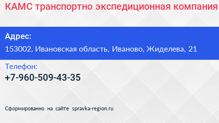 КАМС, транспортно-экспедиционная компания по адресу 153002, Ивановская область, Иваново, Жиделева, 21 в дальнейшем Организация, размещена в следующих категориях: