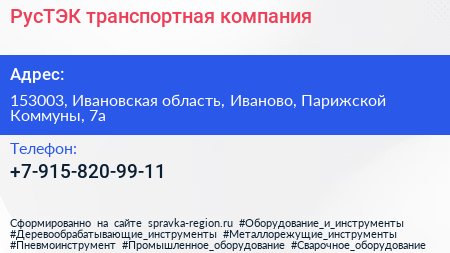 РусТЭК, транспортная компания по адресу 153003, Ивановская область, Иваново, Парижской Коммуны, 7а в дальнейшем Организация, размещена в следующих категориях: