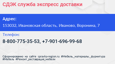 СДЭК, служба экспресс-доставки по адресу 153032, Ивановская область, Иваново, Воронина, 7 в дальнейшем Организация, размещена в следующих категориях: