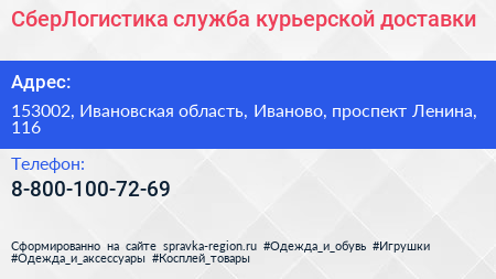 СберЛогистика, служба курьерской доставки по адресу 153002, Ивановская область, Иваново, проспект Ленина, 116 в дальнейшем Организация, размещена в следующих категориях: