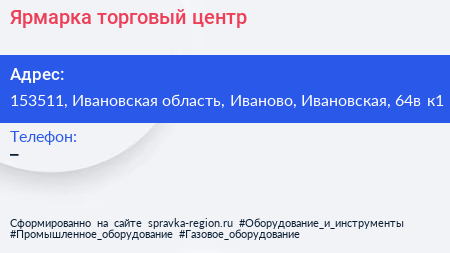 Ярмарка, торговый центр по адресу 153511, Ивановская область, Иваново, Ивановская, 64в к1 в дальнейшем Организация, размещена в следующих категориях: