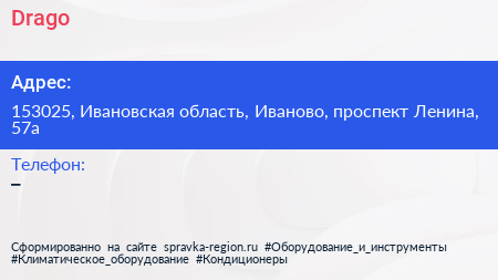 Drago по адресу 153025, Ивановская область, Иваново, проспект Ленина, 57а в дальнейшем Организация, размещена в следующих категориях: