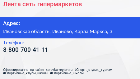 Лента, сеть гипермаркетов по адресу Ивановская область, Иваново, Карла Маркса, 3 в дальнейшем Организация, размещена в следующих категориях: