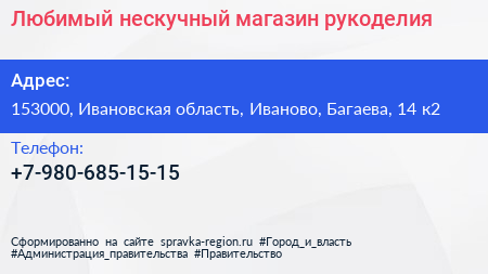 Любимый, нескучный магазин рукоделия по адресу 153000, Ивановская область, Иваново, Багаева, 14 к2 в дальнейшем Организация, размещена в следующих категориях: