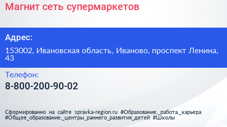 Магнит, сеть супермаркетов по адресу 153002, Ивановская область, Иваново, проспект Ленина, 43 в дальнейшем Организация, размещена в следующих категориях:
