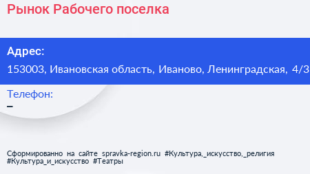 Рынок Рабочего поселка по адресу 153003, Ивановская область, Иваново, Ленинградская, 4/3 в дальнейшем Организация, размещена в следующих категориях: