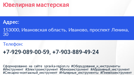 Ювелирная мастерская по адресу 153000, Ивановская область, Иваново, проспект Ленина, 30 в дальнейшем Организация, размещена в следующих категориях:
