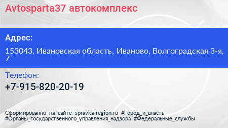 Avtosparta37, автокомплекс по адресу 153043, Ивановская область, Иваново, Волгоградская 3-я, 7 в дальнейшем Организация, размещена в следующих категориях: