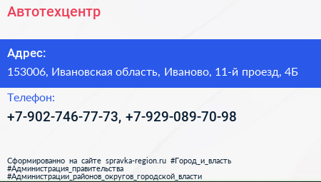 Автотехцентр по адресу 153006, Ивановская область, Иваново, 11-й проезд, 4Б в дальнейшем Организация, размещена в следующих категориях: