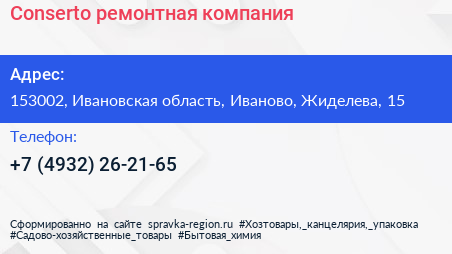 Conserto, ремонтная компания по адресу 153002, Ивановская область, Иваново, Жиделева, 15 в дальнейшем Организация, размещена в следующих категориях:
