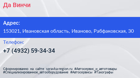 Да Винчи по адресу 153021, Ивановская область, Иваново, Рабфаковская, 30 в дальнейшем Организация, размещена в следующих категориях: