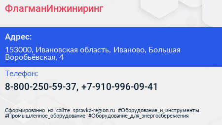 ФлагманИнжиниринг по адресу 153000, Ивановская область, Иваново, Большая Воробьёвская, 4 в дальнейшем Организация, размещена в следующих категориях: