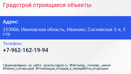 Градстрой, строящиеся объекты по адресу 153006, Ивановская область, Иваново, Сосневская 1-я, 1 стр в дальнейшем Организация, размещена в следующих категориях: