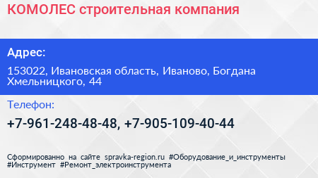 КОМОЛЕС, строительная компания по адресу 153022, Ивановская область, Иваново, Богдана Хмельницкого, 44 в дальнейшем Организация, размещена в следующих категориях: