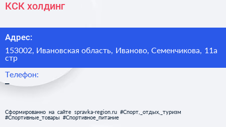 КСК, холдинг по адресу 153002, Ивановская область, Иваново, Семенчикова, 11а стр в дальнейшем Организация, размещена в следующих категориях: