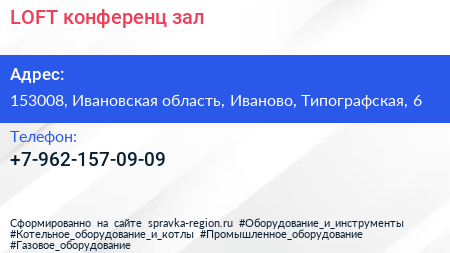 LOFT, конференц-зал по адресу 153008, Ивановская область, Иваново, Типографская, 6 в дальнейшем Организация, размещена в следующих категориях: