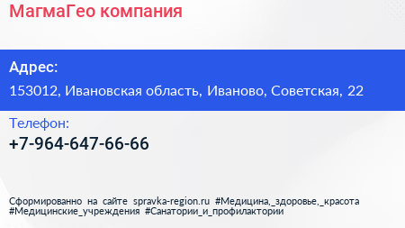 МагмаГео, компания по адресу 153012, Ивановская область, Иваново, Советская, 22 в дальнейшем Организация, размещена в следующих категориях: