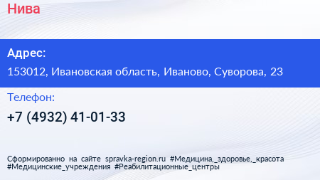 Нива по адресу 153012, Ивановская область, Иваново, Суворова, 23 в дальнейшем Организация, размещена в следующих категориях: