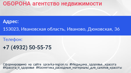ОБОРОНА, агентство недвижимости по адресу 153023, Ивановская область, Иваново, Дюковская, 36 в дальнейшем Организация, размещена в следующих категориях: