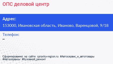 ОПС, деловой центр по адресу 153000, Ивановская область, Иваново, Варенцовой, 9/18 в дальнейшем Организация, размещена в следующих категориях: