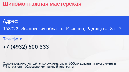 Шиномонтажная мастерская по адресу 153022, Ивановская область, Иваново, Радищева, 8 ст2 в дальнейшем Организация, размещена в следующих категориях: