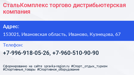 СтальКомплекс, торгово-дистрибьютерская компания по адресу 153021, Ивановская область, Иваново, Кузнецова, 67 в дальнейшем Организация, размещена в следующих категориях: