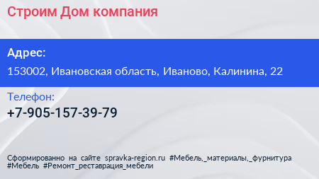 Строим Дом, компания по адресу 153002, Ивановская область, Иваново, Калинина, 22 в дальнейшем Организация, размещена в следующих категориях: