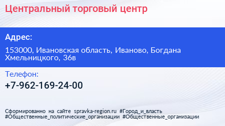 Центральный, торговый центр по адресу 153000, Ивановская область, Иваново, Богдана Хмельницкого, 36в в дальнейшем Организация, размещена в следующих категориях: