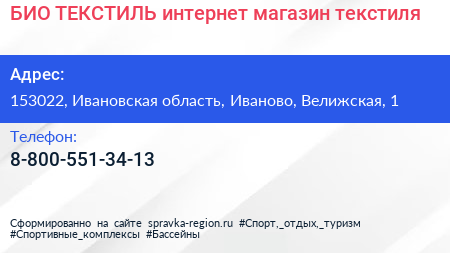 БИО-ТЕКСТИЛЬ, интернет-магазин текстиля по адресу 153022, Ивановская область, Иваново, Велижская, 1 в дальнейшем Организация, размещена в следующих категориях: