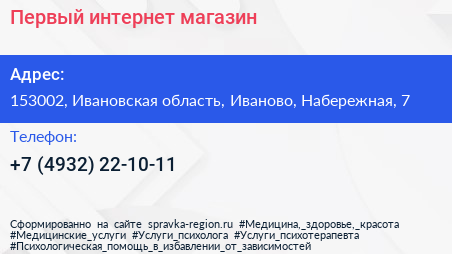 Первый, интернет-магазин по адресу 153002, Ивановская область, Иваново, Набережная, 7 в дальнейшем Организация, размещена в следующих категориях: